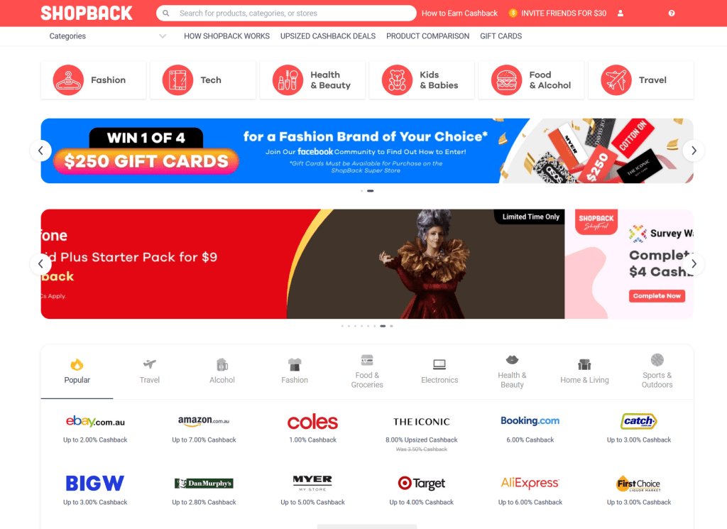 The two main sites for Australian consumers are Shopback and Cashrewards. They offer varying rates of cashback for purchases from major retailers and brands, and both of these sites have a minimum cash out amount of $10.01. ‘Upsized’ cashback rates of 10%-15% are offered occasionally at different retailers (most of the time they are around 1%-5%). The categories of products available for cashback for each individual retailer are constantly updated as well, so make sure your product is in the right category for cashback.