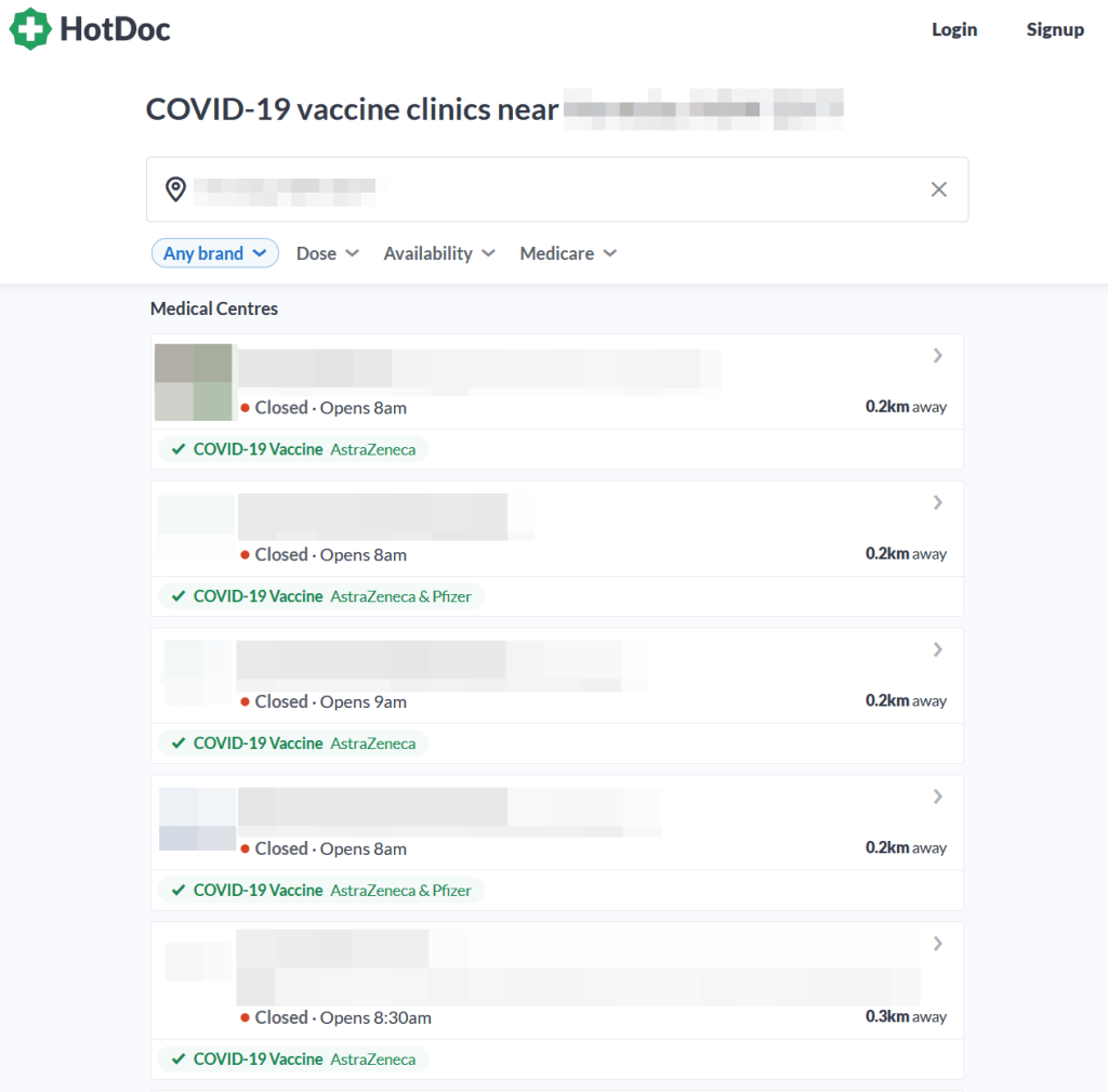I called the first one. “Are you an existing patient of this practice?” they asked. I wasn’t. They told me they weren’t offering vaccines to patients who hadn’t been to the practice before, because “people from 20km away have been calling to try and book vaccine appointments”, and that it’d be at least 6-8 weeks before they offered it to new patients.