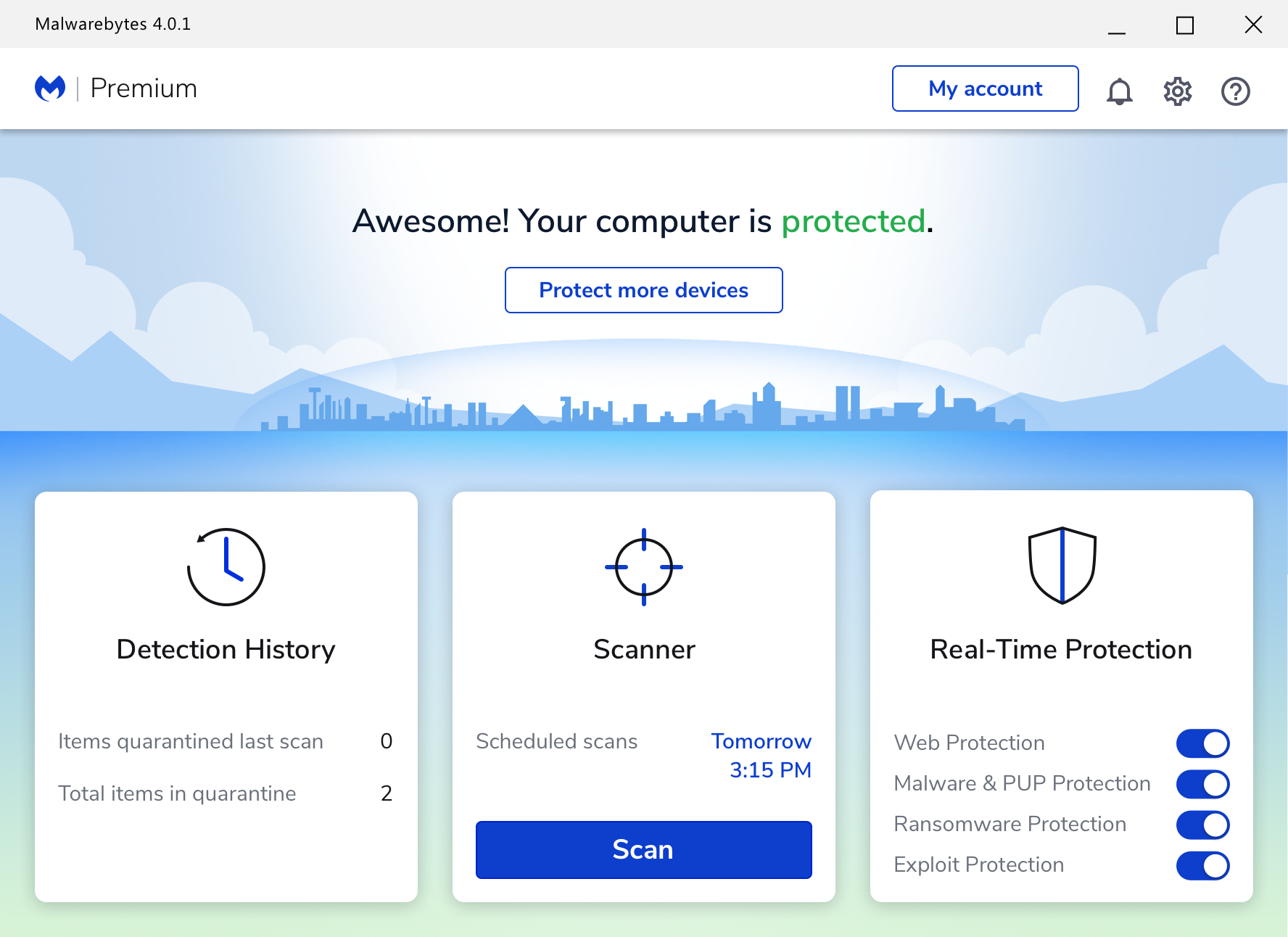 Malwarebytes is a malware detection software that I’d recommend be used more as a ‘supplementary’ malware scanner and not as an anti-virus software by itself.